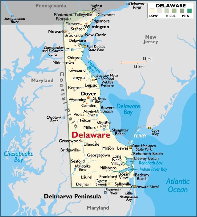 Delaware is located in the South Atlantic region of the United States. It’s bordered by Maryland on the West and Southwest, Pennsylvania on the North, New Jersey and the Atlantic Ocean on the Northeast, Delaware Bay on the East and Delaware River.