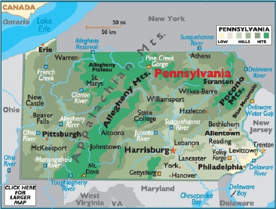 Pennsylvania geographical area and extent: