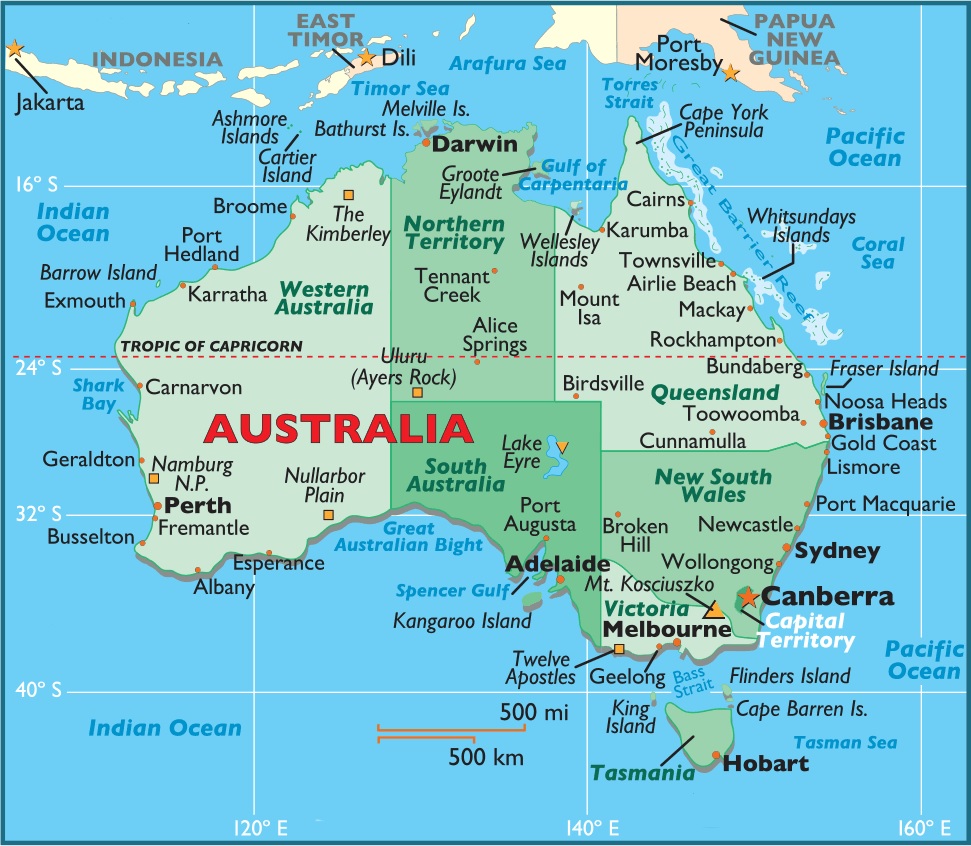 During the 19th century, separate and somewhat independent colonies were formed from parts of New South Wales, which loosely occupied the eastern half of the country; they included Queensland, Tasmania, South Australia and Victoria.